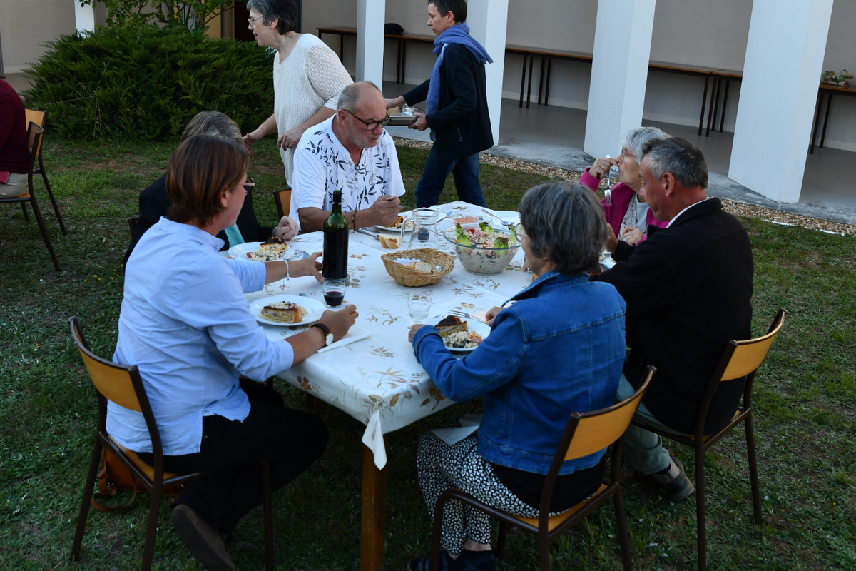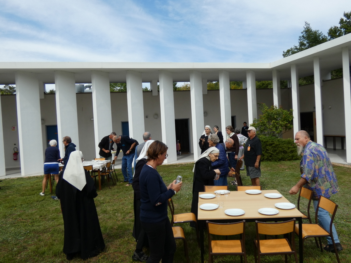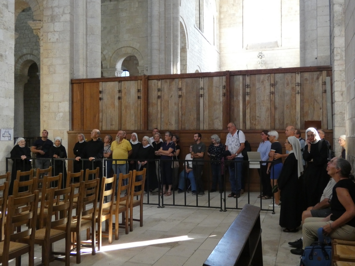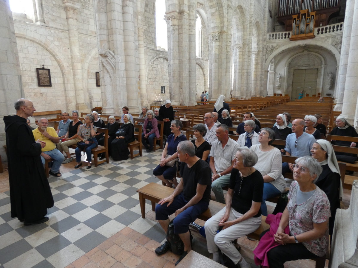 Après cette première journée, nous avons voulu poursuivre cette aventure et proposer de découvrir Saint Benoît et sa Règle de vie, au monastère de Bouzy-la-Forêt. Nous leur avions donné rendez-vous le dimanche 24 août après-midi à l’abbaye de saint Benoît sur Loire toute proche. Le père Louis-Marie nous a fait visiter la basilique et nous avons eu un temps d’échange avec un premier témoignage, celui d’Ariane ‘petite sœur’ amie de la Congrégation de longue date. Nous avons pu prendre un temps de prière autour des reliques de Notre Père Saint Benoît et chanter Vêpres avec les frères. Le lendemain, une journée intense étaient prévue avec 3 autres témoignages, des échanges en petits groupes puis en plenum. Prier ensemble, partager la parole et le pain, échanger sur le charisme de la Congrégation, tout cela fortifie les liens entre nous et nous donne envie de continuer à bâtir une fraternité où sœurs et laïcs reçoivent les uns des autres, s’épaulent pour ‘chercher vraiment Dieu’ comme Saint Benoît nous y invite.