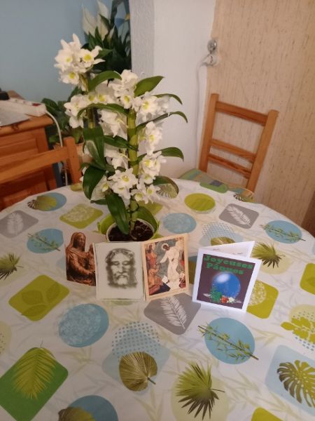 Loué sois-tu Seigneur! Aujourd'hui, ce fut Pâques à la maison. Deux de mes filles sont venues à la maison. Elles sont adultes mais souvent en conflit. Elles ont pu passer un bout de temps ensemble et se parler, se respecter, sans se fâcher. Un ange est passé. Grâce de Pâques. Merci Seigneur.