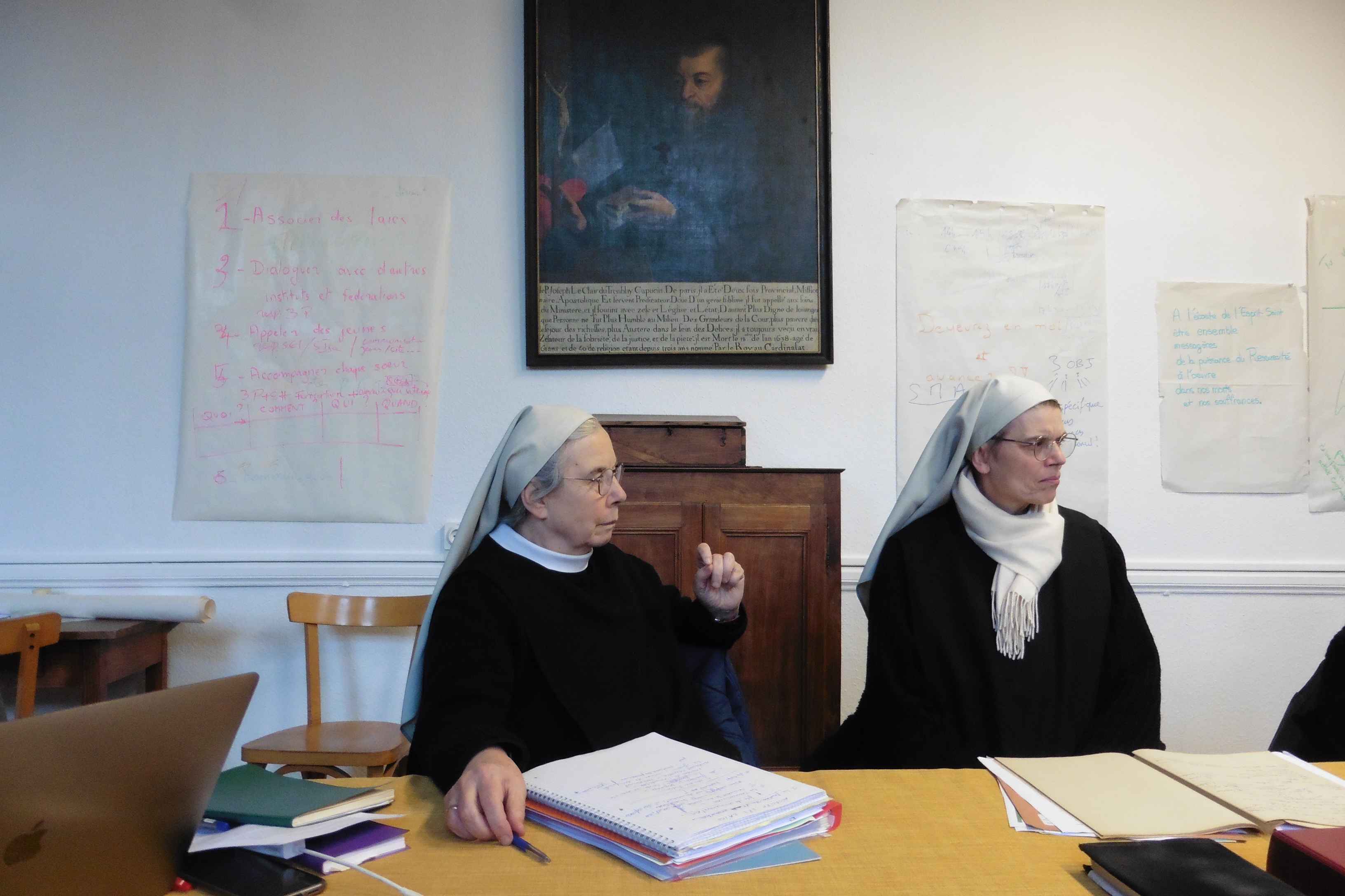 Du 11 au 23 novembre, notre congrégation a vécu un chapitre général : une réunion des prieures, conseillères et déléguées de chaque communauté pour discerner ensemble la marche de la congrégation et son avenir. Nous étions 10 : 4 sœurs de Bouzy la Forêt (Mère Marie-Caroline - prieure, sr Myriam - conseillère, sr Hallel-Marie et sr Elisabeth de la Trinité - déléguées), 4 de Prailles (Mère Anne Delphine - prieure, sr Tiphaine-Marie - conseillère, sr Isabelle et sr Dorothée – déléguées), et 2 sœurs de Jérusalem (Mère Marie - prieure présidente et sr Marie-Bénédicte - conseillère).