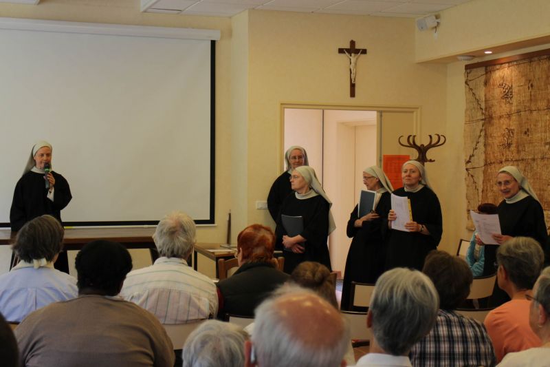 Après la prière de l’office de None, les bénédictines nous gâtent par un mini concert « Faire chanter les archives » qui reprend des partitions du XVIIe siècle, retrouvées dans les archives de la Congrégation.