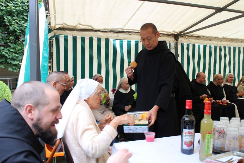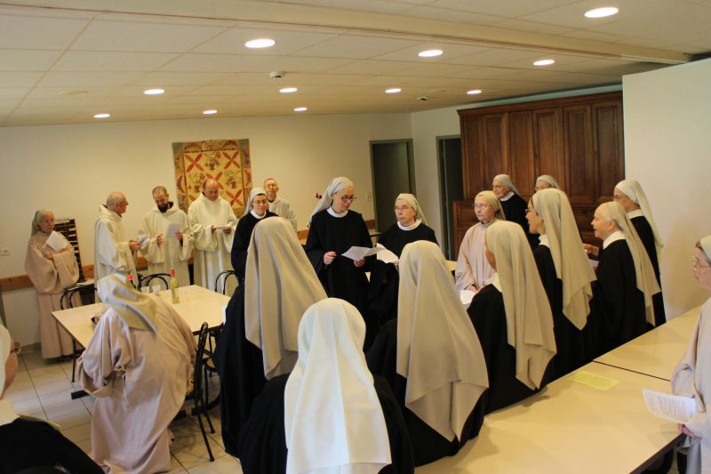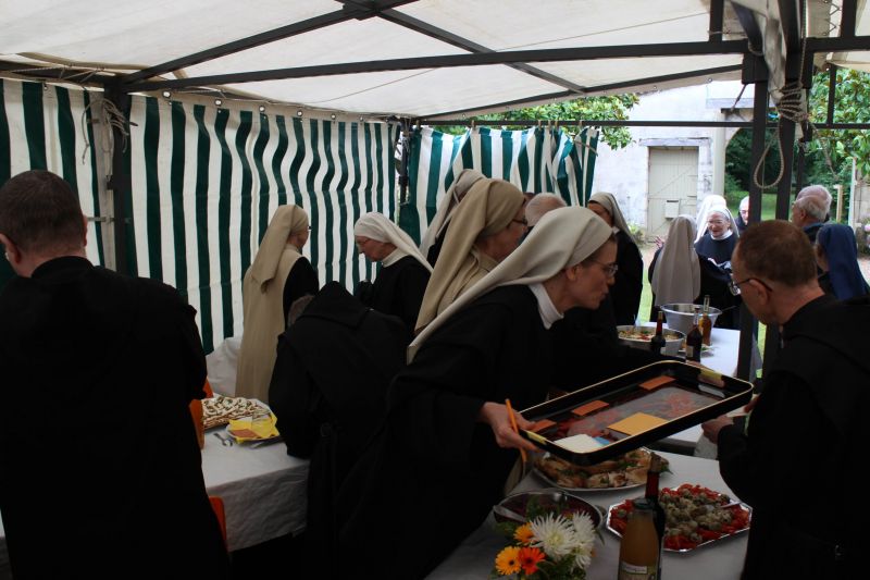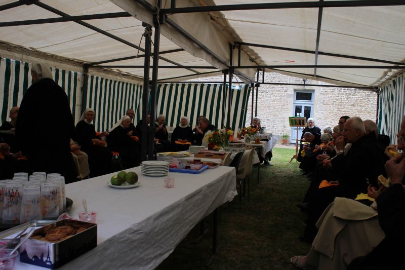 Pendant plusieurs jours, le monastère de Prailles est à l'image d'une ruche bourdonnante. Des soeurs se pressent un peu partout: c'est la chasse ouverte aux mauvaises herbes et aux toiles d'araignées. La communauté accueille ses amis, moines et moniales, des communautés voisines : Martigné et Bellefontaine (Anjou), Maumont ( Charentes) et bien sûr celles du diocèse : Sainte-Croix, Ligugé et les carmélites de Niort-Bessines, une bonne quarantaine de frères et soeurs avec qui rendre grâce et se réjouir dans le Seigneur!