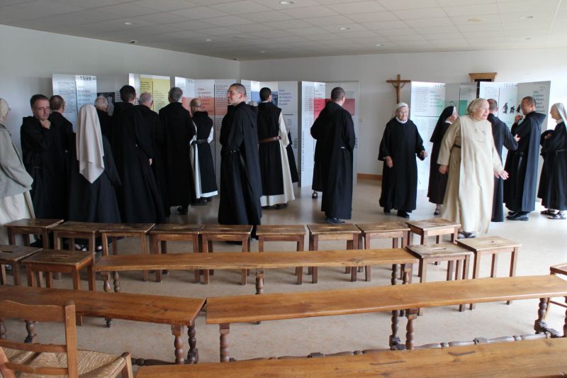 Après le repas, une fois que tous sont installés dans la salle du réfectoire, sœur Marie nous explique la genèse du projet: dix ans plus tôt, lors du chapitre général de 2007, une sœur rappelle que le quatrième centenaire est pour très bientôt. C'est alors une prise de conscience générale et les bénédictines décident de vivre le temps qui les sépare de cette célébration comme une "neuvaines d'année".