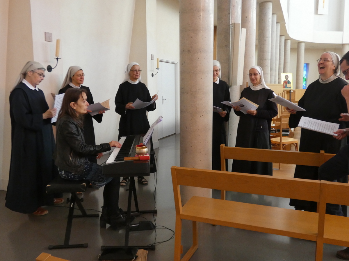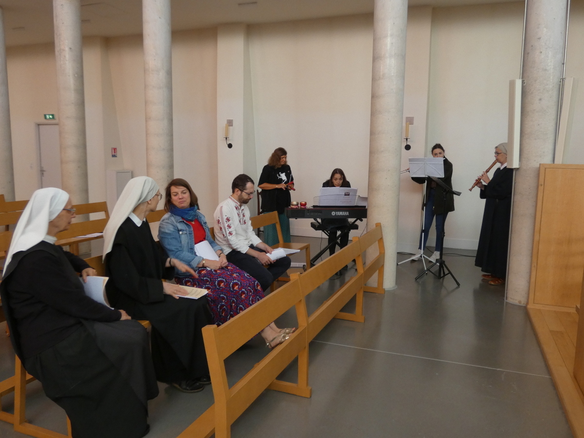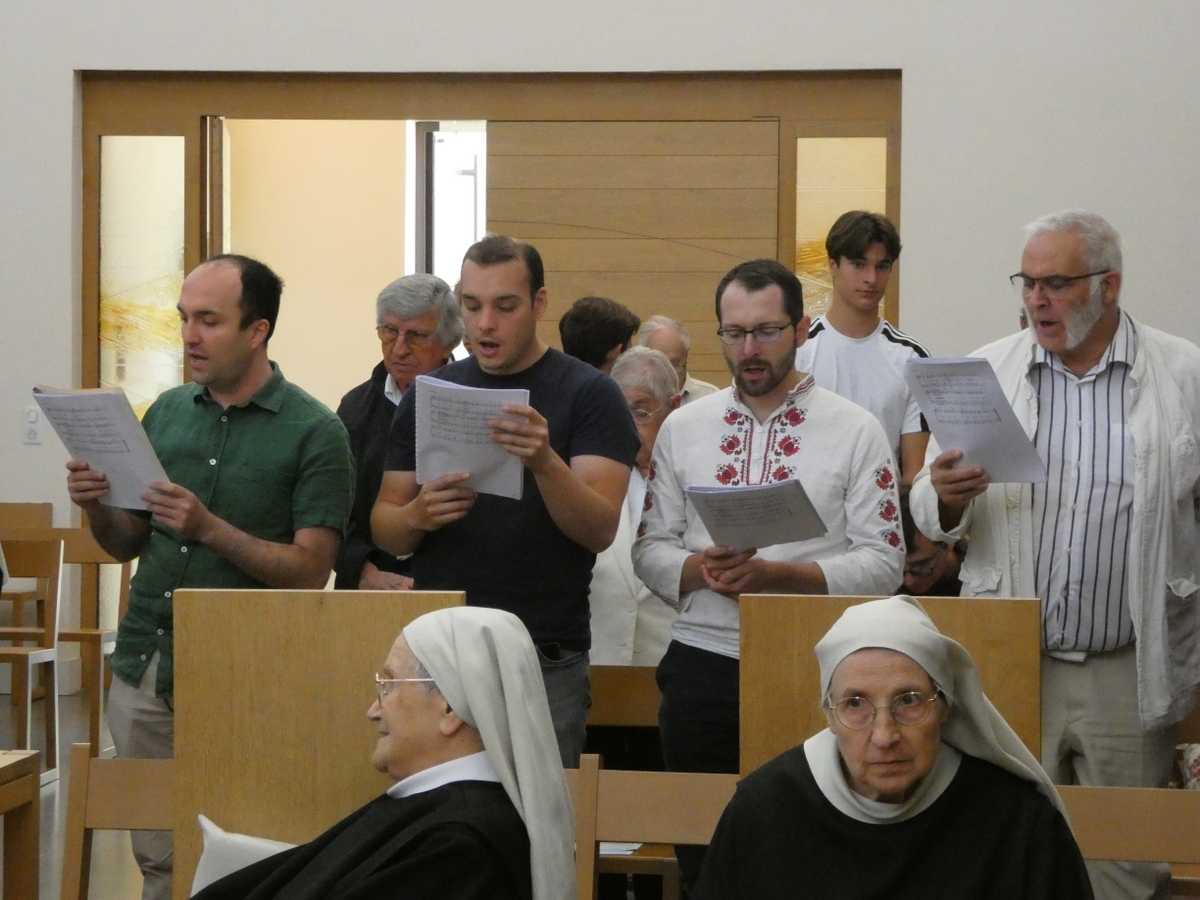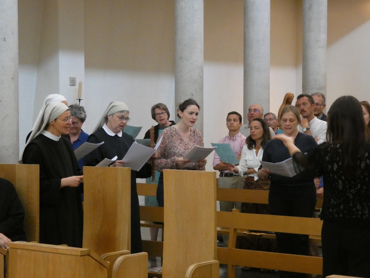 ‘’Chanter c’est prier deux fois’’ c’est ce que nous avons expérimenté avec cette première halte chantante. Une dizaine de participants ont répondu à cette proposition qui leur a permis de découvrir la vie monastique autrement. Sous la direction de Carole Matras, amie de nos monastères depuis notre quatrième centenaire, épaulée par des sœurs de Prailles, Jérusalem et Bouzy-la- Forêt, la proposition offrait différents répertoires, chants en français, grégorien, compositions médiévales et quelques pièces du répertoire de notre Congrégation. Chaque matin, un temps biblique faisait le lien entre les chants travaillés et la Parole de Dieu qui les inspire. Les Vigiles du samedi soir et la messe du dimanche étaient animés par cette schola bigarrée. Une belle ambiance qui s’est retrouvée lors de l’aubade donnée après la messe, la joie était dans les cœurs lors du déjeuner dehors tous ensemble qui a clôturé cette belle semaine. Tous ont apprécié l’implication de Carole et des sœurs, chanter ensemble uni les voix et les coeurs !