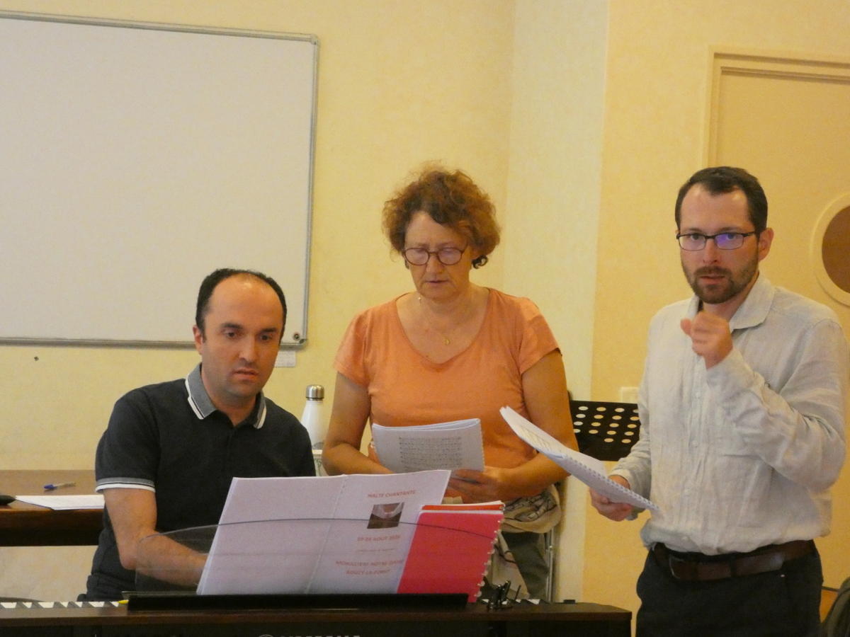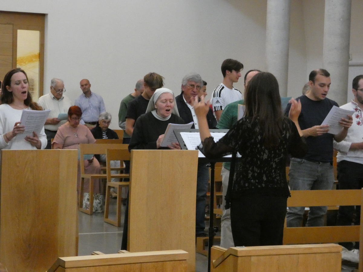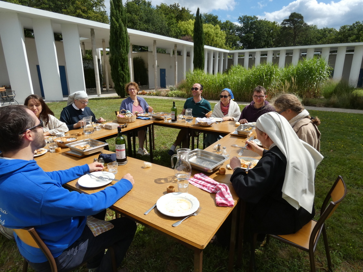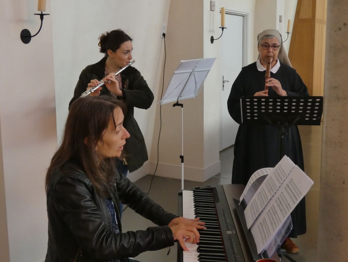 ‘’Chanter c’est prier deux fois’’ c’est ce que nous avons expérimenté avec cette première halte chantante. Une dizaine de participants ont répondu à cette proposition qui leur a permis de découvrir la vie monastique autrement. Sous la direction de Carole Matras, amie de nos monastères depuis notre quatrième centenaire, épaulée par des sœurs de Prailles, Jérusalem et Bouzy-la- Forêt, la proposition offrait différents répertoires, chants en français, grégorien, compositions médiévales et quelques pièces du répertoire de notre Congrégation. Chaque matin, un temps biblique faisait le lien entre les chants travaillés et la Parole de Dieu qui les inspire. Les Vigiles du samedi soir et la messe du dimanche étaient animés par cette schola bigarrée. Une belle ambiance qui s’est retrouvée lors de l’aubade donnée après la messe, la joie était dans les cœurs lors du déjeuner dehors tous ensemble qui a clôturé cette belle semaine. Tous ont apprécié l’implication de Carole et des sœurs, chanter ensemble uni les voix et les coeurs !