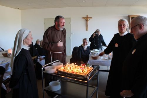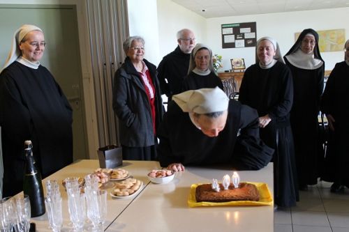 Et que serait un anniversaire sans gâteau illuminé? (Difficile de faire tenir 400 bougies malgré les proportions généreuses de la forêt noire). Devant cette véritable épreuve de force, les Capucins sont invités à aider les Bénédictines.